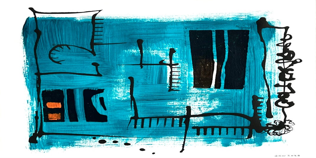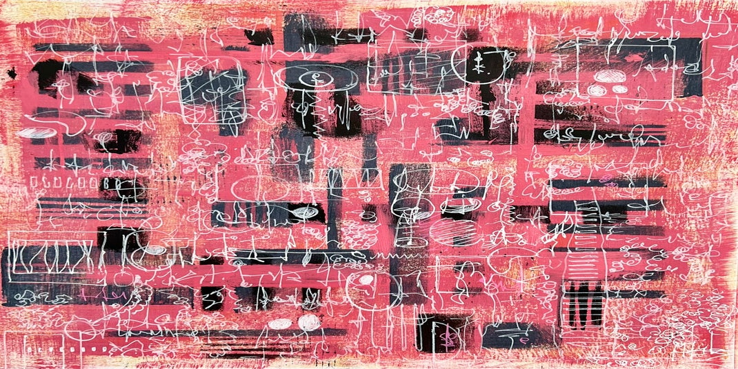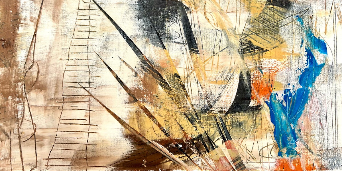I work primarily in abstract painting. My practice is rooted in a fascination with the emotional power of colour, the rhythm of line, and the layered histories that can build up on a surface over time. I like to think of my paintings as conversations between gesture and structure, between spontaneity and control, and ultimately between the artwork and the viewer.