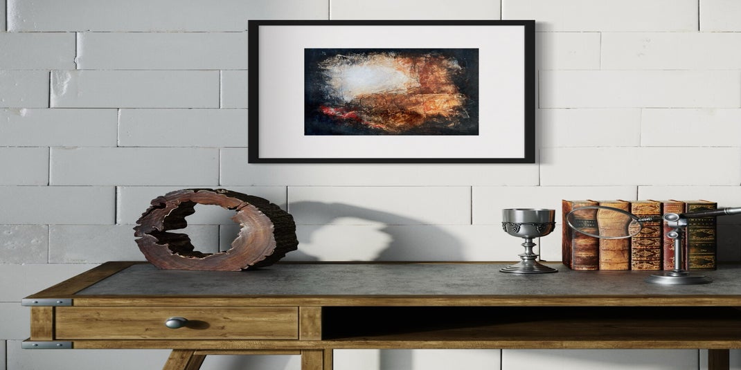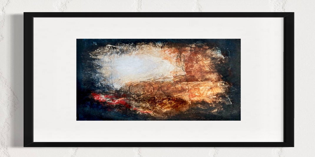 When I was working on this 30x30cm piece, I wanted to create something that felt both raw and luminous. The first thing people usually notice is the large patch of white paint that glows out from the darker background. I like the way it sits slightly off centre, almost like light pushing its way through shadow. Around it, I’ve built layers of earthy browns, burnt oranges and hints of red, which add warmth and energy. Those colours remind me of rust, fire, or the textures of weathered stone, and I enjoy how they contrast against the cooler, darker areas.