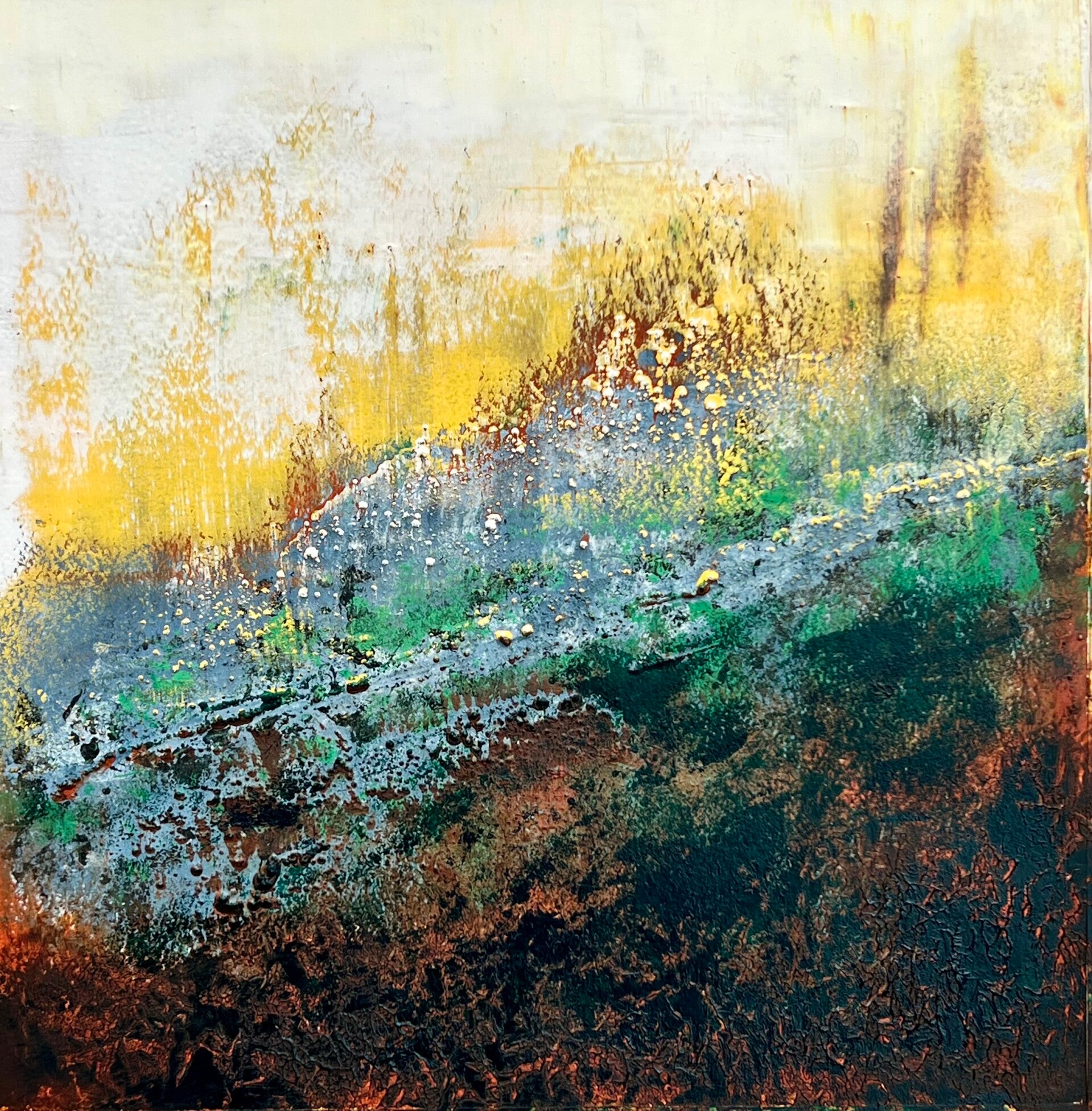 In my ongoing exploration of chance aesthetics in creative practice I’ve been interested in how disruption and randomness can open up new directions, as it applies in this case to abstract painting. In my earlier article, Chance Aestheticsl in Art, (which I recommend reading before continuing with this one) I described chance as a way of interrupting intention, a method of loosening control so that something unexpected could emerge. I’m not suggesting this process should be used continuously, just when there is a block in your work or you need to explore a new direction, form of composition, palette etc. The following is certainly not a definitive guide and I also need to work on it more to fully understand the implications for my work.